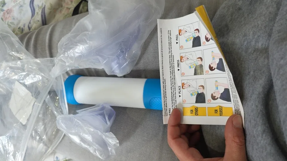 This breathing trainer and CPR support mask is designed for quick-response training or emergency situations. Its compact design helps simulate artificial respiration, making it an essential tool for CPR practice, rescue training, or basic first aid kits.